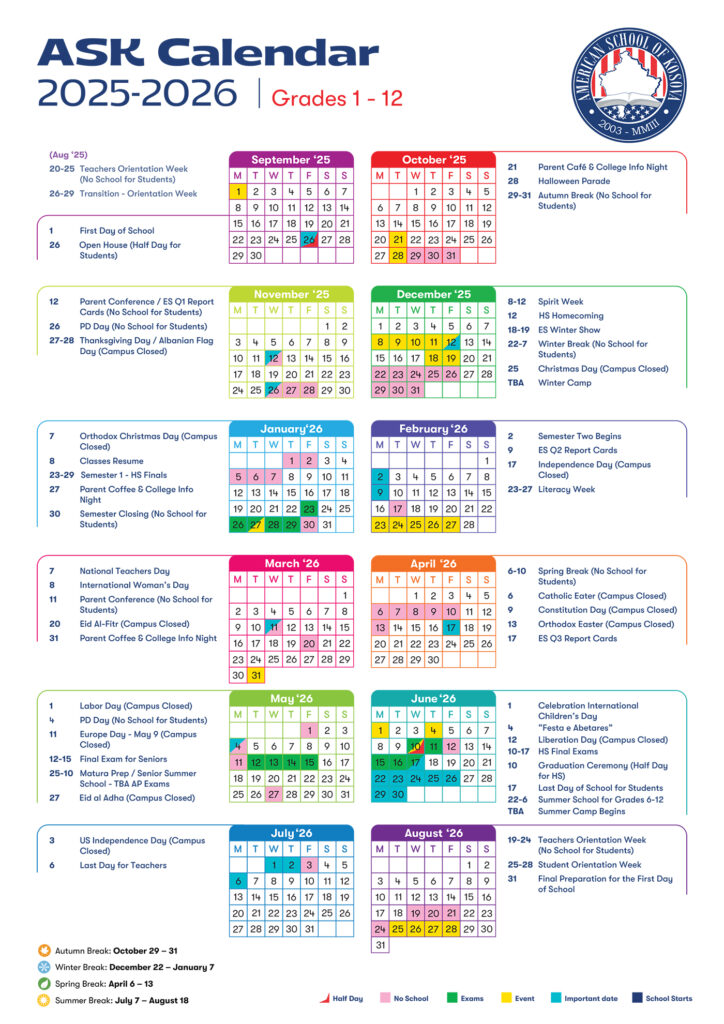 Academic Calendar – American School of Kosova